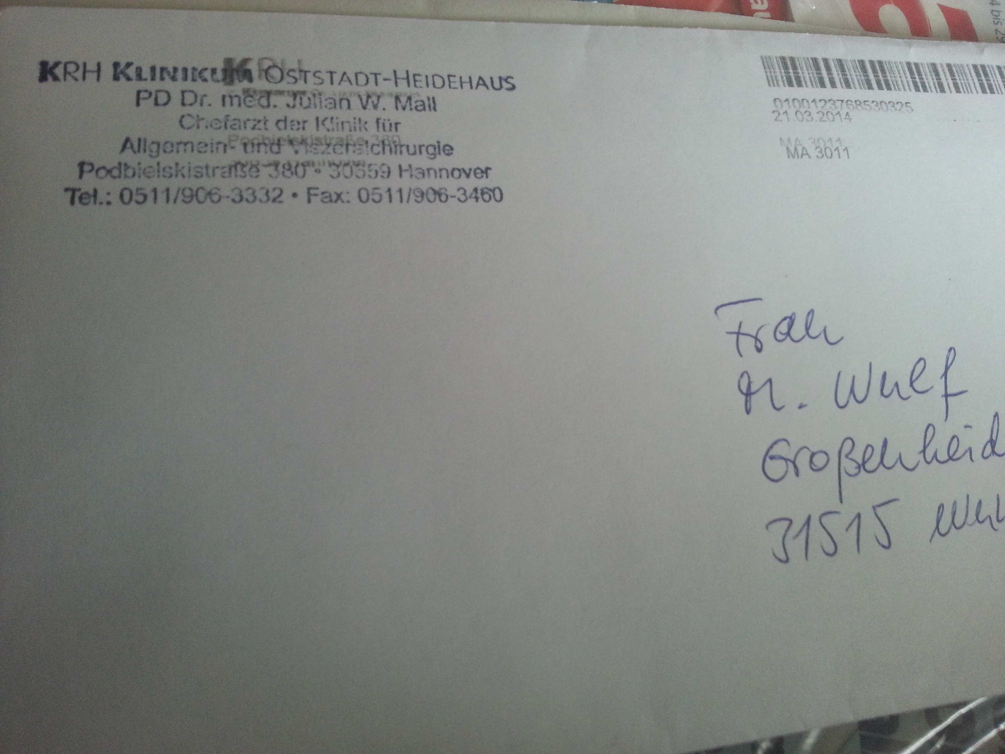 Der Brief aus dem Oststadtkrankenhaus ist endlich da.